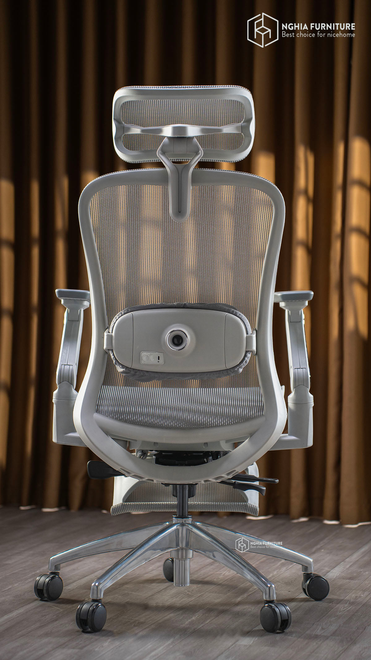 ErgoMass features a full mesh design across all contact surfaces – from the backrest and seat to the headrest – providing optimal breathability, especially suitable for the hot and humid tropical climate of Vietnam. The seat is designed in a "waterfall" style, meaning it's curved at both ends, helping to reduce pressure on the back of the thighs, supporting blood circulation and preventing numbness in the legs when sitting for long periods. In addition to the breathable mesh, there is a high-density foam cushion underneath, providing both comfort and long-lasting elasticity.