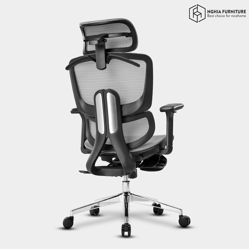 The entire seat and backrest are covered with high-quality Taiwanese mesh – breathable, highly elastic, and durable over time. This material helps to reduce heat buildup, prevent sagging, and provide a cool feeling throughout a long workday.
