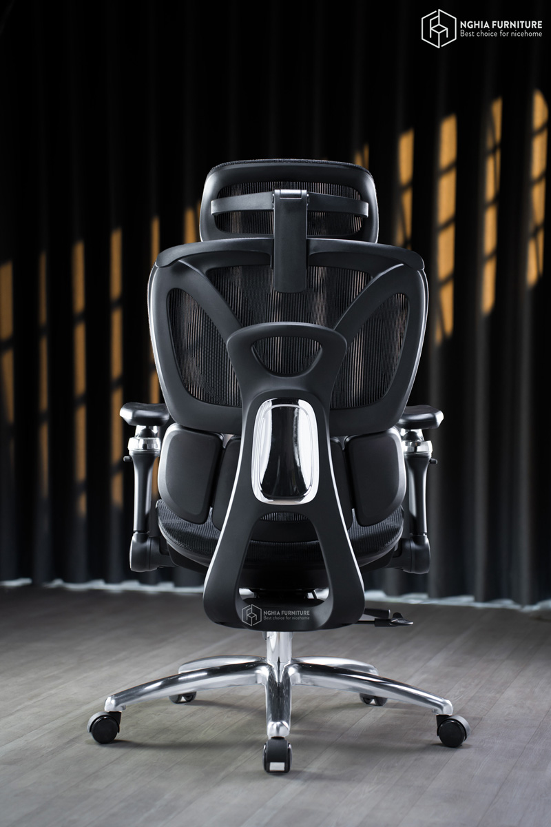 The chair's base is made from high-grade aluminum alloy, which is not only aesthetically pleasing but also extremely sturdy. With a load capacity of up to 1136kg – an impressive figure in the under 5 million VND price range – users can recline and change positions continuously while maintaining absolute stability.