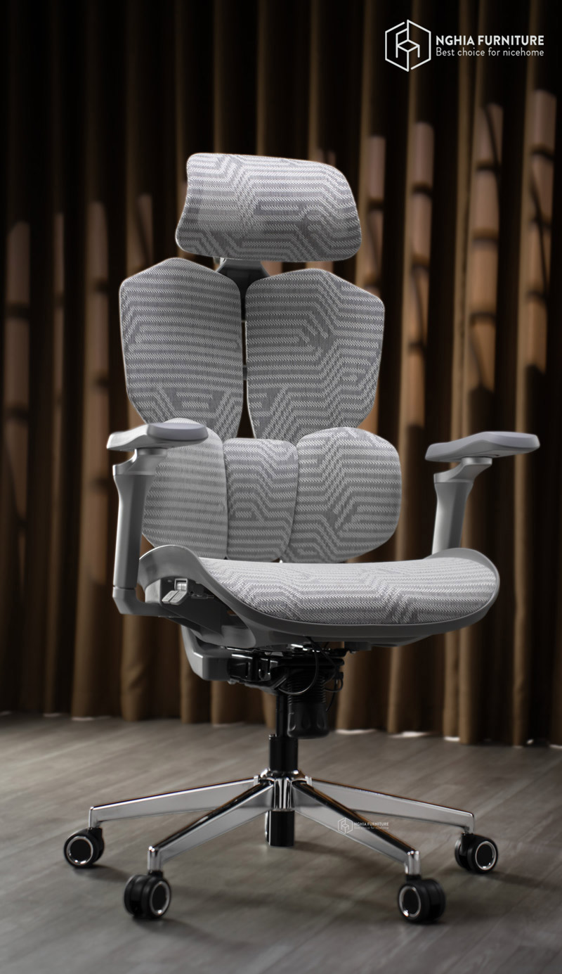 The entire backrest and seat cushion use premium DuPont mesh fabric from the USA, which is 4-way stretchable and has up to 83% elasticity. This material is not only exceptionally breathable – extremely suitable for hot and humid climates – but also skin-friendly and does not cause stuffiness. The thick mesh and sturdy structure help the chair maintain its tension, preventing sagging or deformation after prolonged use.