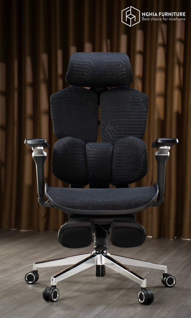 The entire backrest and seat cushion use premium DuPont mesh fabric from the USA, which is 4-way stretchable and has up to 83% elasticity. This material is not only exceptionally breathable – extremely suitable for hot and humid climates – but also skin-friendly and does not cause stuffiness. The thick mesh and sturdy structure help the chair maintain its tension, preventing sagging or deformation after prolonged use.