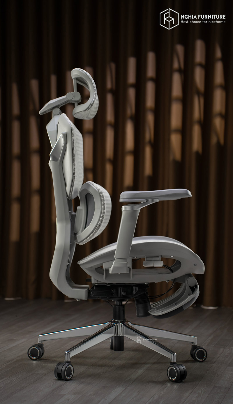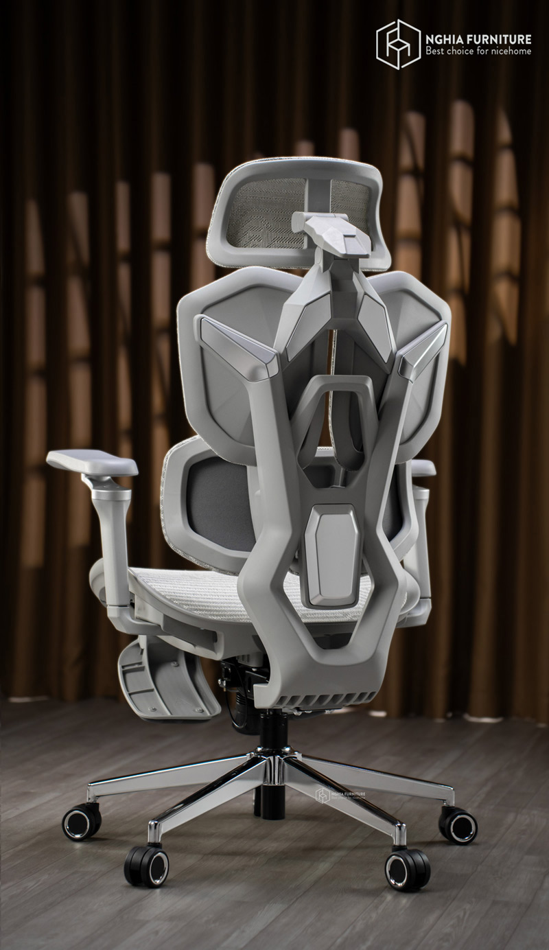 Thanks to its ability to distribute pressure evenly across the contact area, the upper backrest helps reduce pressure on the spine, minimizing pain, stiffness, and hunching when sitting for long periods. This is a smart design, especially suitable for those who need a chair for long hours of work or require high concentration while gaming.